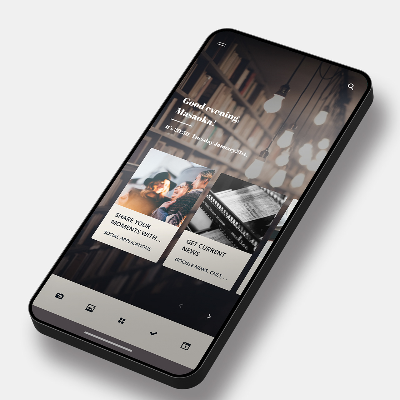 直観的な動きを意識した、心地良いアニメーションを実現しています。ホーム画面ではなく、まるで他のアプリケーションを利用しているかのような使用感は、使いやすさと珍しさを共存させた体験を提供します。